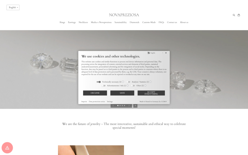 Entdecken Sie CCM19, den Cookie Consent Manager speziell für Juweliere! Maßgeschneiderte Datenschutzlösungen, die glänzen. Steigern Sie die Zustimmungsraten dank CCM19 – Ihrer Wahl für lokalen Datenschutz, ohne Datenübertragung ins Ausland. Sicher, zuverlässig & zielgruppengenau!