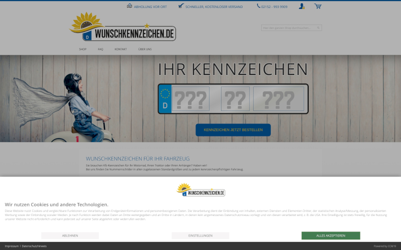 Das Herzstück von CCM19 für Ihre Kfz-Firmen Webseite, Onlineshop oder sonstige Applikation - der Cookie Banner für Kfz-Firmen. Mit diesem Banner realisieren Sie auf Ihrer Webseite die notwendige Zustimmung zum Setzen von diversen Cookies und zum ausführen von (Tracking)Skripten.