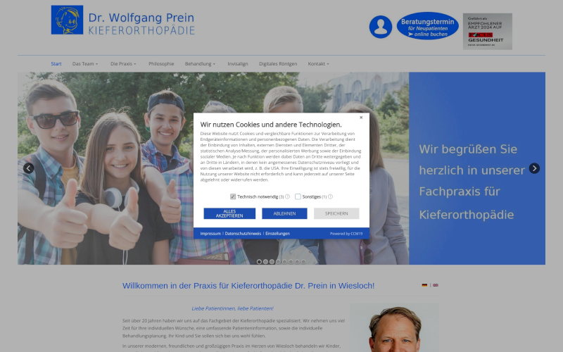 Entdecken Sie CCM19, den Cookie Consent Manager speziell für Kieferorthopäden. Optimieren Sie Datenschutz und Nutzerzustimmung! Erfahren Sie, warum CCM19 die ideale Wahl für Ihre Praxis ist: echter Support, keine Datenübertragung ins Ausland, und spezifisch für Kieferorthopäden entwickelt.