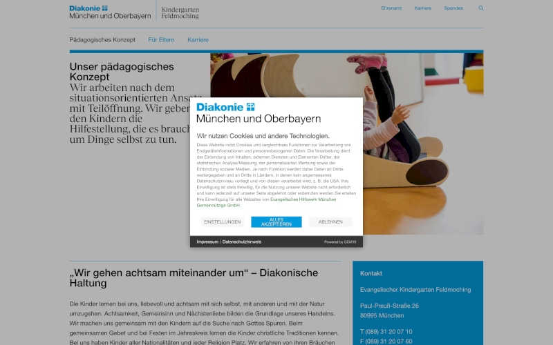 Entdecken Sie CCM19: Ihren maßgeschneiderten Cookie Consent Manager für Kindertagesstätten. Kompatibel, sicher & kinderleicht einsetzbar! Optimieren Sie jetzt Ihre Webseite mit CCM19 - für maximale Datenschutzkonformität speziell in Kindertagesstätten. Vertrauen inklusive!