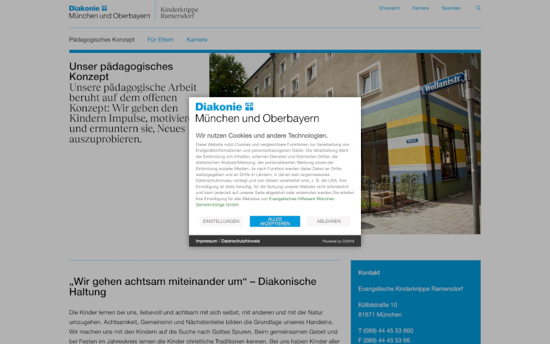 Das Herzstück von CCM19 für Ihre Kirchen Webseite, Onlineshop oder sonstige Applikation - der Cookie Banner für Kirchen. Mit diesem Banner realisieren Sie auf Ihrer Webseite die notwendige Zustimmung zum Setzen von diversen Cookies und zum ausführen von (Tracking)Skripten.