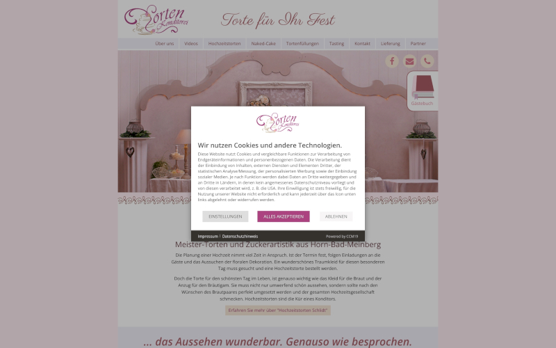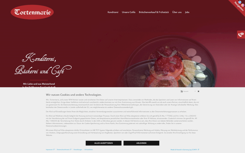 Entdecken Sie CCM19, den maßgeschneiderten Cookie Consent Manager speziell für Konditoreien. Steigern Sie die Zustimmung Ihrer Besucher! Optimiert für Ihre Branche bietet CCM19 zuverlässigen Datenschutz, 100% in Deutschland entwickelt. Erfahren Sie mehr!