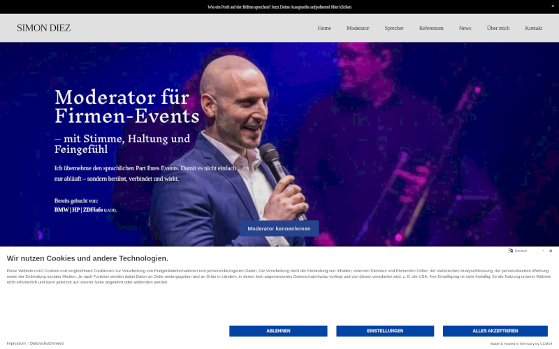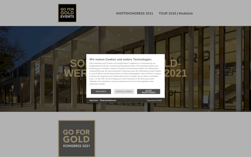Das Herzstück von CCM19 für Ihre Konferenzen und Veranstaltungen Webseite, Onlineshop oder sonstige Applikation - der Cookie Banner für Konferenzen und Veranstaltungen. Mit diesem Banner realisieren Sie auf Ihrer Webseite die notwendige Zustimmung zum Setzen von diversen Cookies und zum ausführen von (Tracking)Skripten.