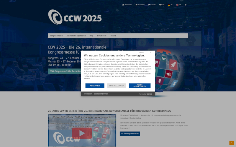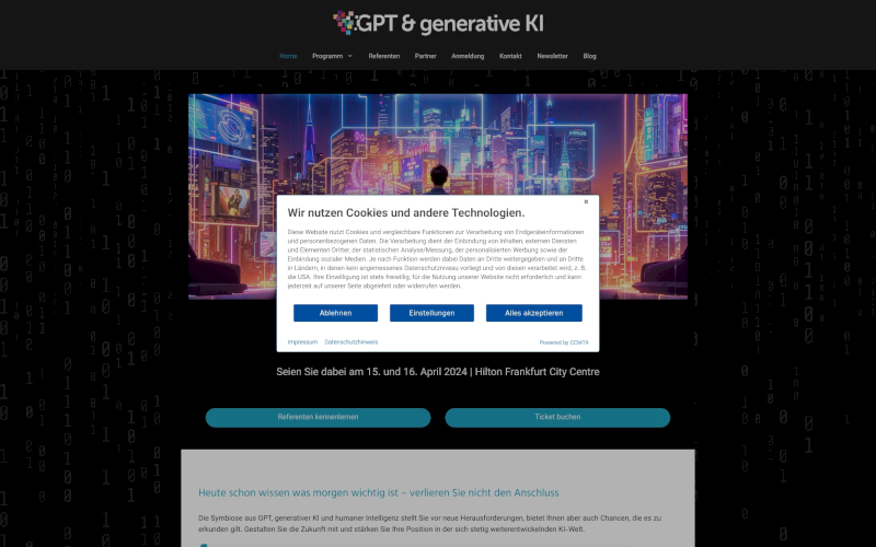 Entdecken Sie CCM19, den führenden Cookie Consent Manager, maßgeschneidert für Konferenzen und Veranstaltungen. Steigern Sie die Zustimmung Ihrer Besucher effizient. Mit echtem, deutschsprachigem Support, bietet CCM19 eine optimierte Cookie-Banner Lösung - sicher, ohne Datenübertragung ins Ausland und perfekt für Ihre Branche!