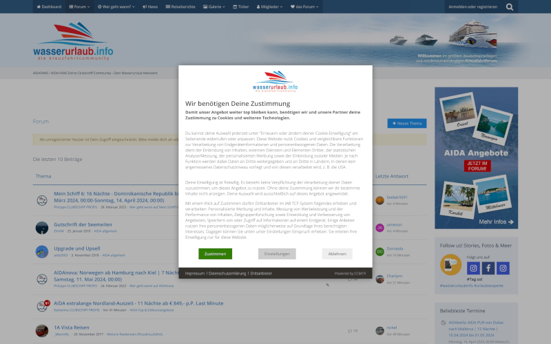 Cookie Consent Manager für Kreuzfahrtunternehmen
