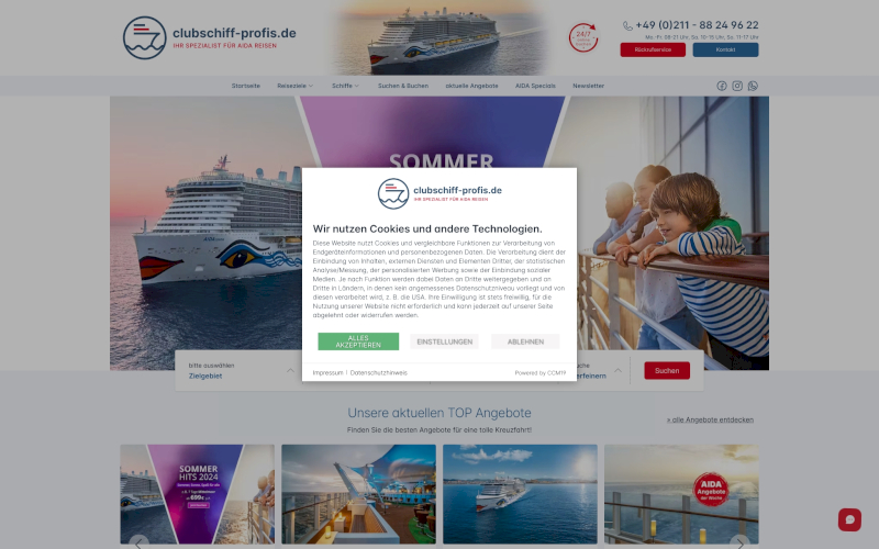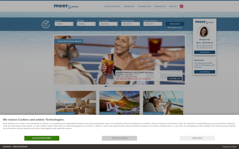 Cookie Banner für Kreuzfahrtunternehmen