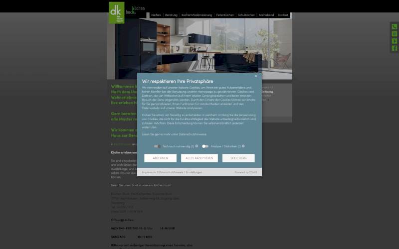 - DSGVO- und TDDDG-Konformität: CCM19 hilft Ihrer Küchenmanufaktur, alle rechtlichen Anforderungen zu erfüllen, indem es eine datenschutzkonforme Speicherung der Cookie-Einwilligungen sicherstellt.