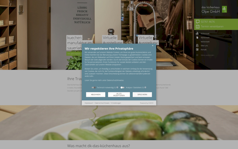 Entdecken Sie CCM19: Ihren branchenspezifischen Cookie Consent Manager für die Küchenplanung. Datenschutz, optimiert! Steigern Sie mit uns die Zustimmung Ihrer Website-Besucher. Von Experten für Küchenplanung entwickelt. Erfahren Sie mehr!