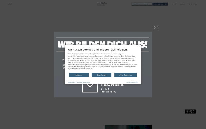 Das Herzstück von CCM19 für Ihre Kunststoffhersteller Webseite, Onlineshop oder sonstige Applikation - der Cookie Banner für Kunststoffhersteller. Mit diesem Banner realisieren Sie auf Ihrer Webseite die notwendige Zustimmung zum Setzen von diversen Cookies und zum ausführen von (Tracking)Skripten.