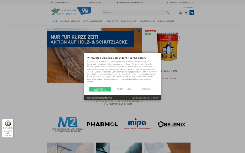 Das Herzstück von CCM19 für Ihre Lackierereien Webseite, Onlineshop oder sonstige Applikation - der Cookie Banner für Lackierereien. Mit diesem Banner realisieren Sie auf Ihrer Webseite die notwendige Zustimmung zum Setzen von diversen Cookies und zum ausführen von (Tracking)Skripten.