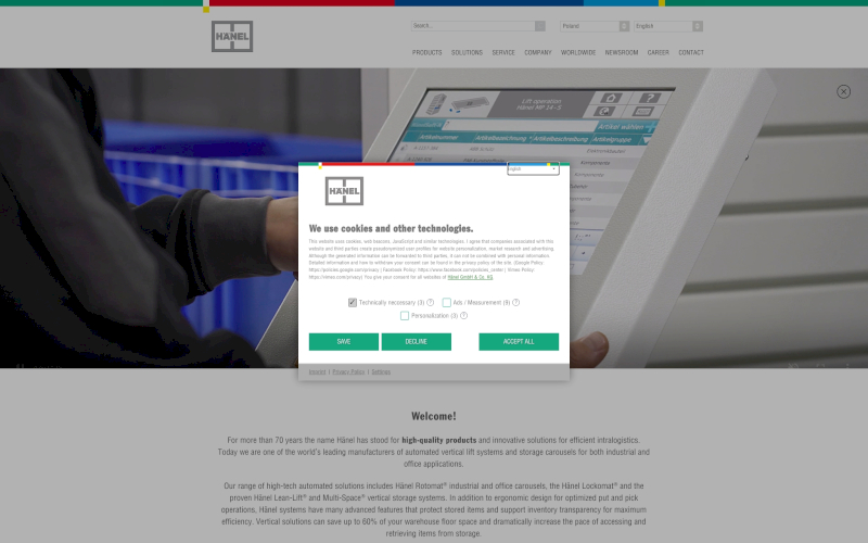 Entdecken Sie CCM19, den maßgeschneiderten Cookie Consent Manager speziell für Lagertechnik. Maximieren Sie Besucherzustimmungen. Optimierung und Einhaltung mit deutschem Support, ausschließlich in Deutschland gehosted. Die ideale Lagertechnik-Lösung.