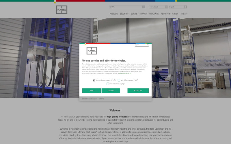 Entdecken Sie den besten Cookie Consent Manager für die Lagertechnik-Branche