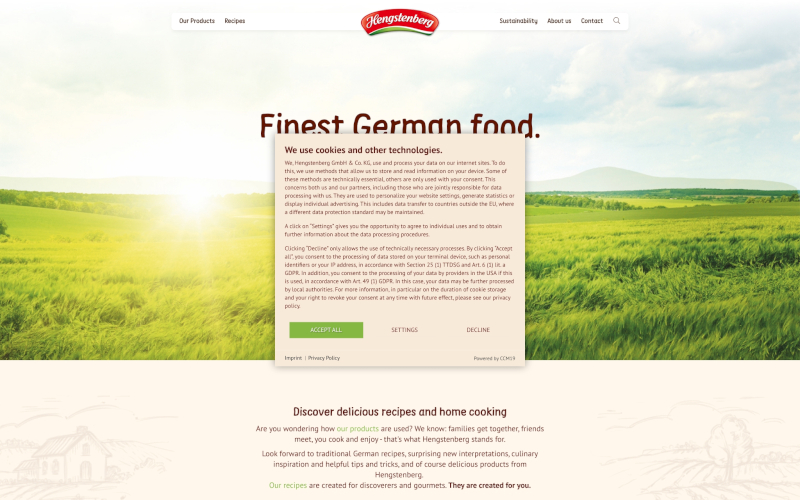 CCM19 setzt neue Maßstäbe in Bezug auf Datenschutz und Nutzererlebnis. Durch seine Anpassungsfähigkeit bietet es Lebensmittelherstellern die Möglichkeit, den Cookie Consent sowohl DSGVO- als auch TDDDG-konform zu gestalten. Die Hosting-Sicherheit, mit Servern in Deutschland und ohne Abhängigkeit von US-Anbietern, macht CCM19 zur ersten Wahl für datenschutzbewusste Unternehmen.