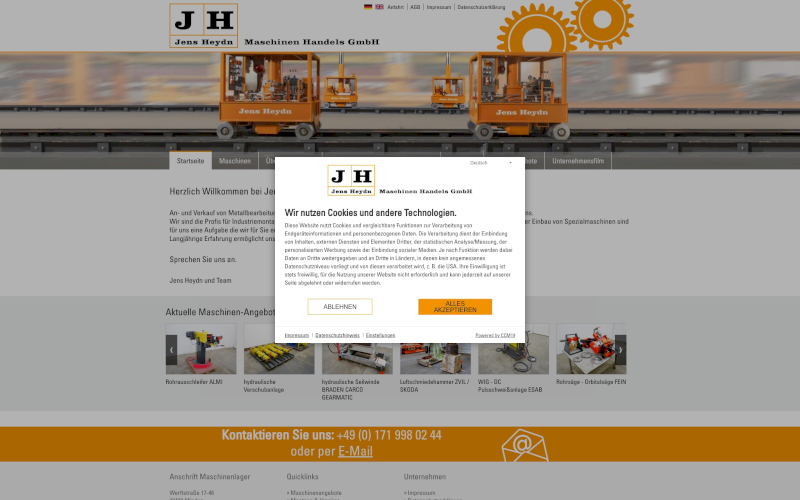 Cookie Consent Manager für Maschinenbauunternehmen