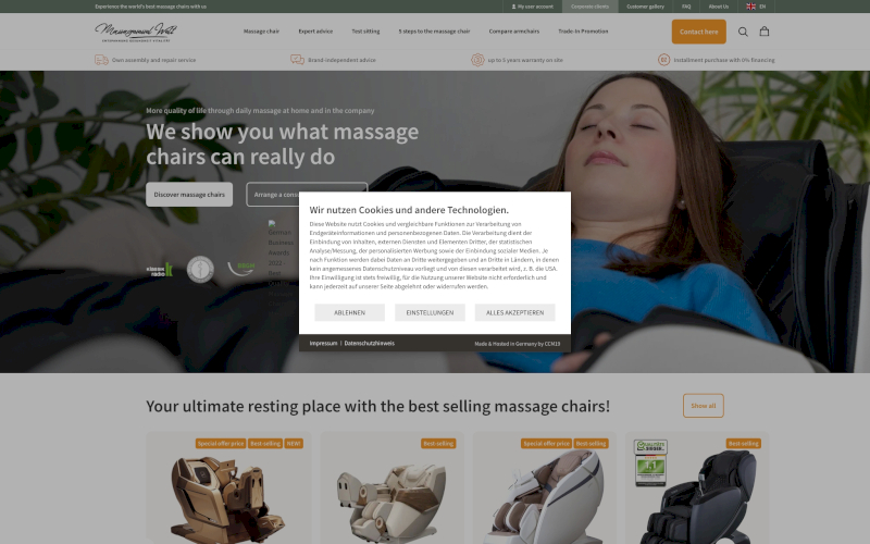 Das Herzstück von CCM19 für Ihre Massagepraxen Webseite, Onlineshop oder sonstige Applikation - der Cookie Banner für Massagepraxen. Mit diesem Banner realisieren Sie auf Ihrer Webseite die notwendige Zustimmung zum Setzen von diversen Cookies und zum ausführen von (Tracking)Skripten.