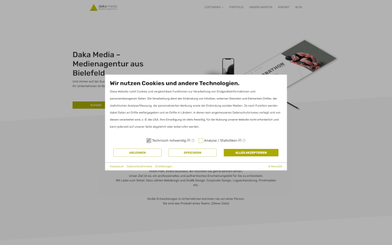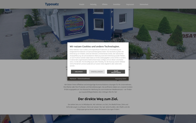 Das Herzstück von CCM19 für Ihre Medienagenturen Webseite, Onlineshop oder sonstige Applikation - der Cookie Banner für Medienagenturen. Mit diesem Banner realisieren Sie auf Ihrer Webseite die notwendige Zustimmung zum Setzen von diversen Cookies und zum ausführen von (Tracking)Skripten.