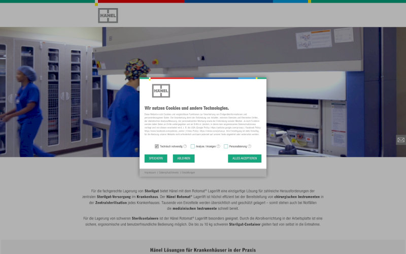 Cookie Banner für Medizinische Ausstattung & Geräte