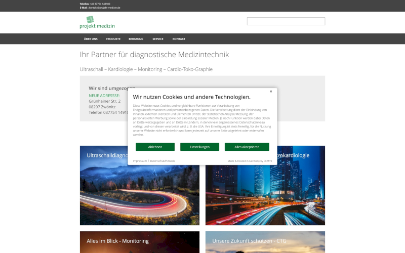 Das Herzstück von CCM19 für Ihre Medizintechnik Webseite, Onlineshop oder sonstige Applikation - der Cookie Banner für Medizintechnik. Mit diesem Banner realisieren Sie auf Ihrer Webseite die notwendige Zustimmung zum Setzen von diversen Cookies und zum ausführen von (Tracking)Skripten.