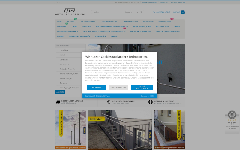 Das Herzstück von CCM19 für Ihre Metallbauhandwerksbetriebe Webseite, Onlineshop oder sonstige Applikation - der Cookie Banner für Metallbauhandwerksbetriebe. Mit diesem Banner realisieren Sie auf Ihrer Webseite die notwendige Zustimmung zum Setzen von diversen Cookies und zum ausführen von (Tracking)Skripten.
