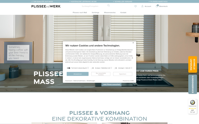 CCM19 ist speziell dafür entwickelt worden, Möbel-Online-Shops dabei zu unterstützen, ihre Cookie-Zustimmungsfunktionen nicht nur auf einfache Weise zu verwalten, sondern diese auch als einen Mehrwert für den Online-Shop zu nutzen. Die Kombination aus hoher Anpassungsfähigkeit, klarer Kommunikation gegenüber dem Nutzer und der Übersichtlichkeit macht CCM19 zu einem unentbehrlichen Tool für jeden Möbel-Online-Shop.