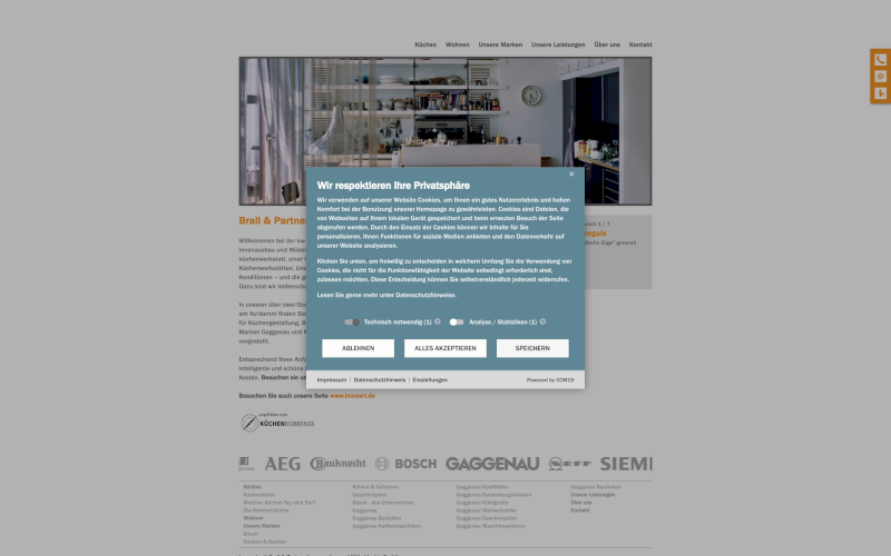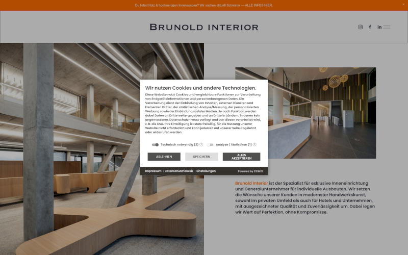 Das Herzstück von CCM19 für Ihre Möbeldesign Webseite, Onlineshop oder sonstige Applikation - der Cookie Banner für Möbeldesign. Mit diesem Banner realisieren Sie auf Ihrer Webseite die notwendige Zustimmung zum Setzen von diversen Cookies und zum ausführen von (Tracking)Skripten.