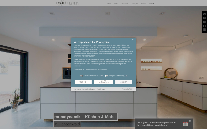 Das Herzstück von CCM19 für Ihre Möbeleinzelhandel Webseite, Onlineshop oder sonstige Applikation - der Cookie Banner für Möbeleinzelhandel. Mit diesem Banner realisieren Sie auf Ihrer Webseite die notwendige Zustimmung zum Setzen von diversen Cookies und zum ausführen von (Tracking)Skripten.