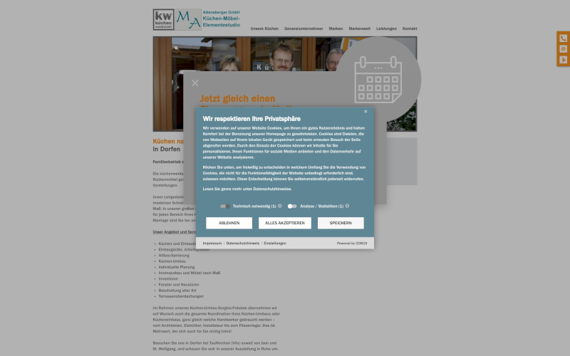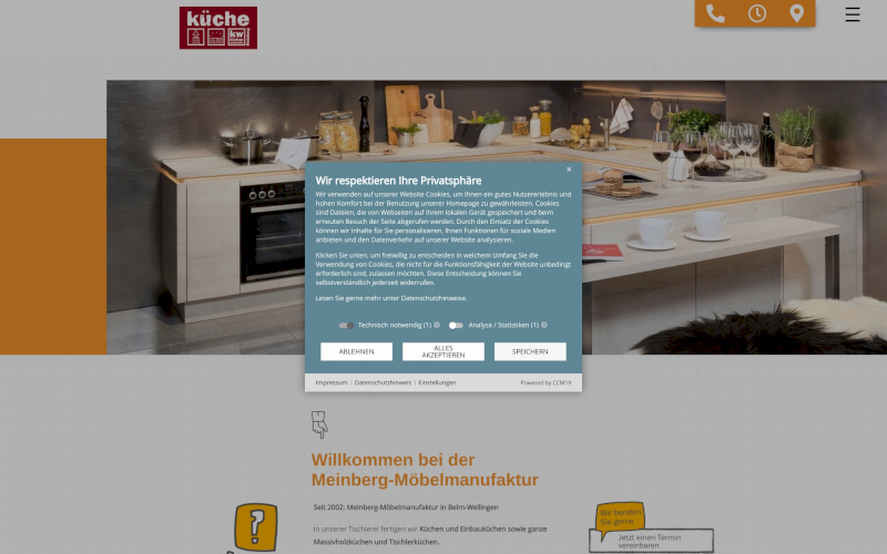 Das Herzstück von CCM19 für Ihre Möbelmanufaktur Webseite, Onlineshop oder sonstige Applikation - der Cookie Banner für Möbelmanufaktur. Mit diesem Banner realisieren Sie auf Ihrer Webseite die notwendige Zustimmung zum Setzen von diversen Cookies und zum ausführen von (Tracking)Skripten.