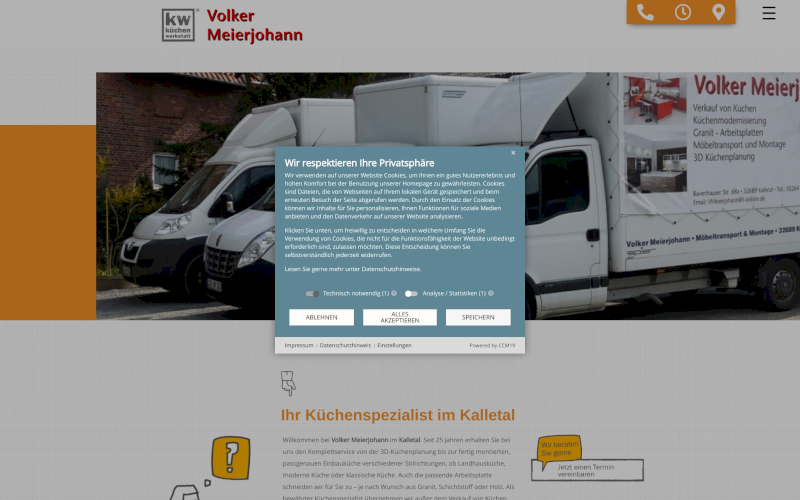 Steigern Sie Ihre Zustimmungsrate mit CCM19, dem führenden Cookie Consent Manager speziell für Möbelspeditionen. Sicher & effizient! Vertrauen Sie auf eine Lösung, die ohne Datenübertragung ins Ausland auskommt und perfekt auf Ihre Branche zugeschnitten ist.