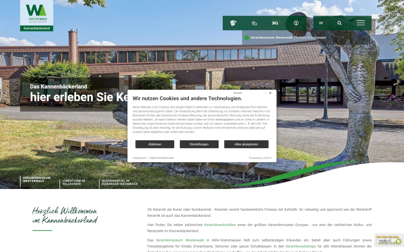 Das Herzstück von CCM19 für Ihre Museen Webseite, Onlineshop oder sonstige Applikation - der Cookie Banner für Museen. Mit diesem Banner realisieren Sie auf Ihrer Webseite die notwendige Zustimmung zum Setzen von diversen Cookies und zum ausführen von (Tracking)Skripten.
