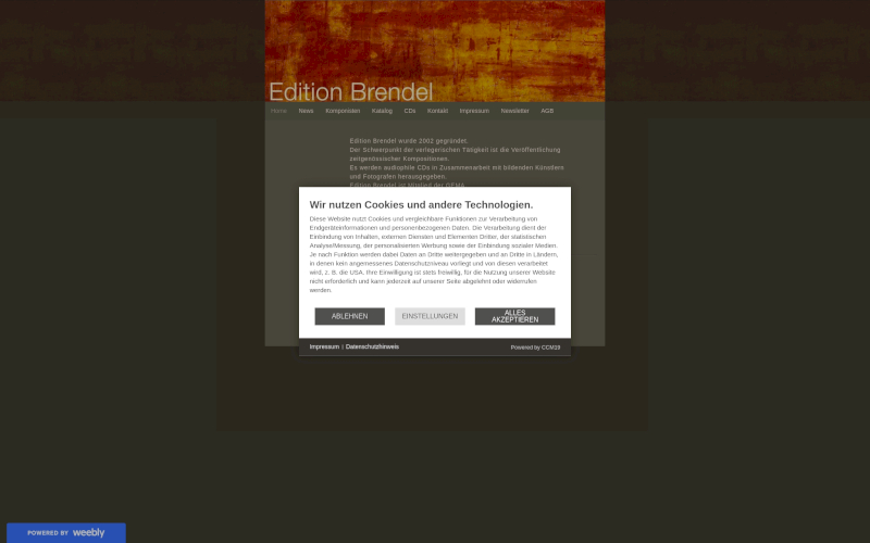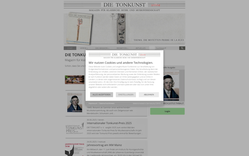 Das Herzstück von CCM19 für Ihre Musikverlage Webseite, Onlineshop oder sonstige Applikation - der Cookie Banner für Musikverlage. Mit diesem Banner realisieren Sie auf Ihrer Webseite die notwendige Zustimmung zum Setzen von diversen Cookies und zum ausführen von (Tracking)Skripten.
