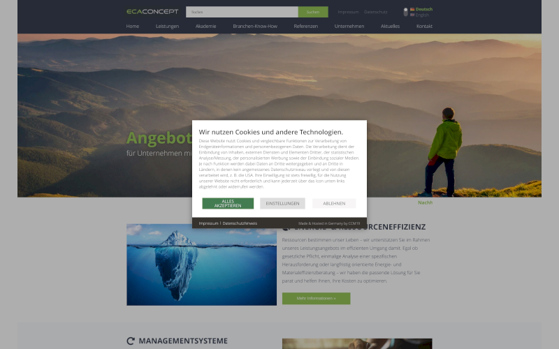 Das Herzstück von CCM19 für Ihre Nachhaltigkeit und Kreislaufwirtschaft Webseite, Onlineshop oder sonstige Applikation - der Cookie Banner für Nachhaltigkeit und Kreislaufwirtschaft. Mit diesem Banner realisieren Sie auf Ihrer Webseite die notwendige Zustimmung zum Setzen von diversen Cookies und zum ausführen von (Tracking)Skripten.