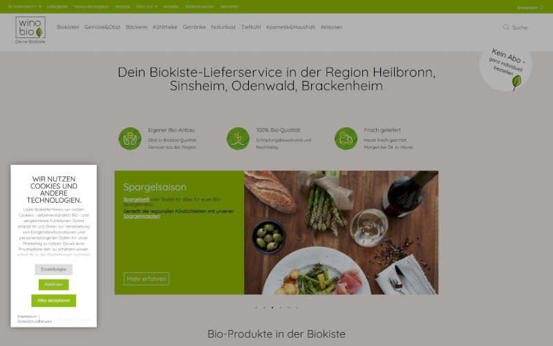 Cookie Banner für Nahrungsmittelhersteller