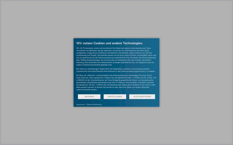 In dem animierten Bild sehen Sie den Cookie Banner in Aktion. Im ersten Fenster gibt es drei Möglichkeiten, die vorgeschrieben sind: Ablehnen, Informationen und Akzeptieren. Jeder Button ist einzeln (de)aktivierbar und als Betreiber haben Sie die Möglichkeit, diese individuell zu bearbeiten und zu gestalten.