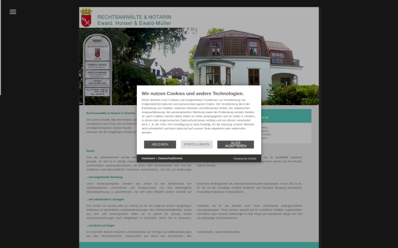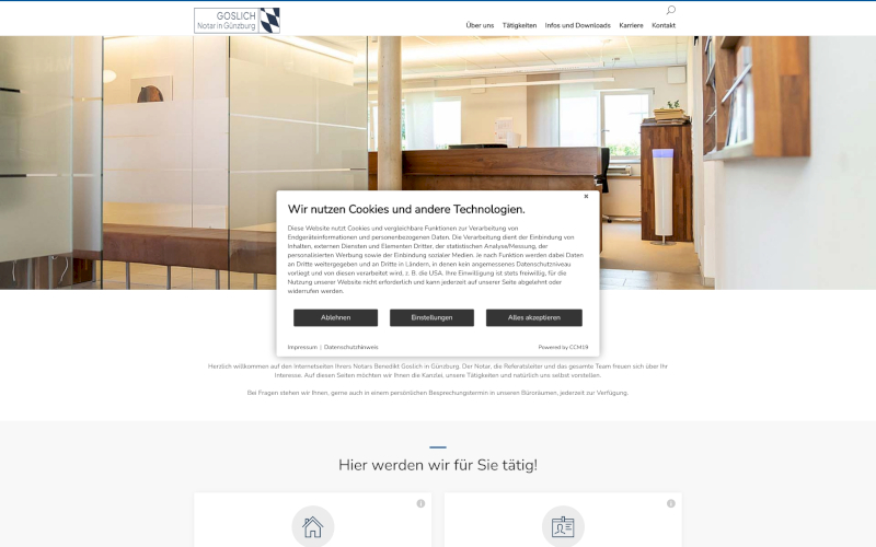 Entdecken Sie CCM19, den führenden Cookie Consent Manager speziell für Notare. Maßgeschneiderte Datenschutz-Exzellenz!Erfahren Sie, wie unsere Lösung die Zustimmung Ihrer Besucher optimiert und Ihr Notarbüro mit deutschem Support und ohne Datenübertragung ins Ausland schützt.