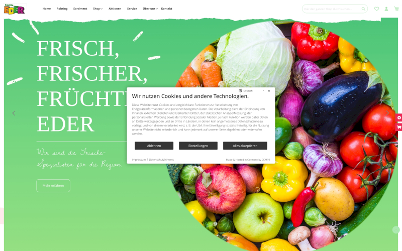 Das Herzstück von CCM19 für Ihre Obst- und Gemüsehändler Webseite, Onlineshop oder sonstige Applikation - der Cookie Banner für Obst- und Gemüsehändler. Mit diesem Banner realisieren Sie auf Ihrer Webseite die notwendige Zustimmung zum Setzen von diversen Cookies und zum ausführen von (Tracking)Skripten.