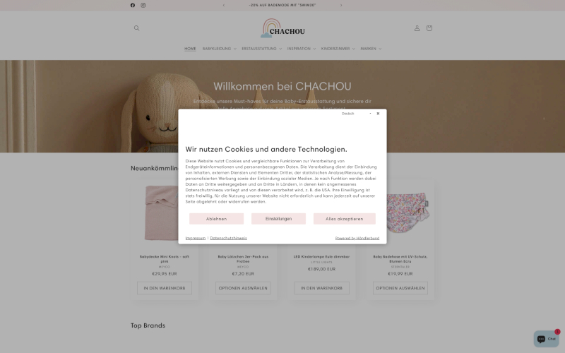 Cookie Consent Manager für Online Shops
