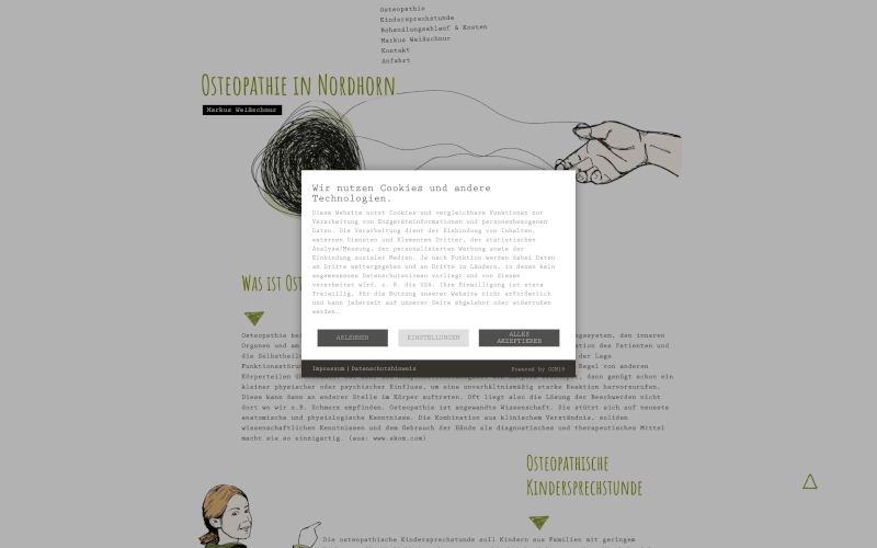 Das Herzstück von CCM19 für Ihre Osteopathen Webseite, Onlineshop oder sonstige Applikation - der Cookie Banner für Osteopathen. Mit diesem Banner realisieren Sie auf Ihrer Webseite die notwendige Zustimmung zum Setzen von diversen Cookies und zum ausführen von (Tracking)Skripten.