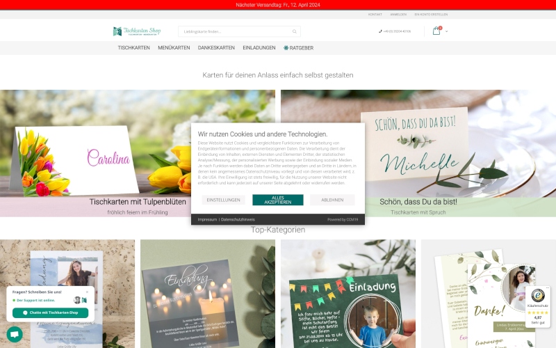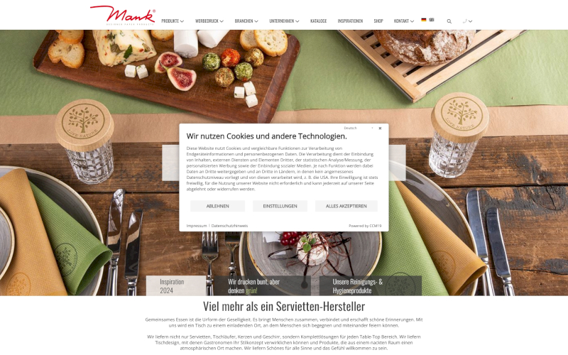 Das Herzstück von CCM19 für Ihre Papierhersteller Webseite, Onlineshop oder sonstige Applikation - der Cookie Banner für Papierhersteller. Mit diesem Banner realisieren Sie auf Ihrer Webseite die notwendige Zustimmung zum Setzen von diversen Cookies und zum ausführen von (Tracking)Skripten.
