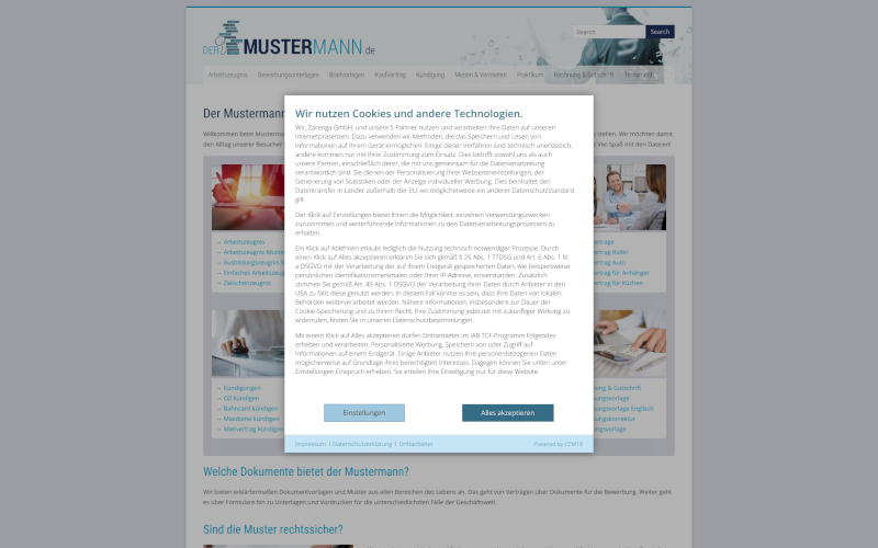 Das Herzstück von CCM19 für Ihre Personalberatungen Webseite, Onlineshop oder sonstige Applikation - der Cookie Banner für Personalberatungen. Mit diesem Banner realisieren Sie auf Ihrer Webseite die notwendige Zustimmung zum Setzen von diversen Cookies und zum ausführen von (Tracking)Skripten.