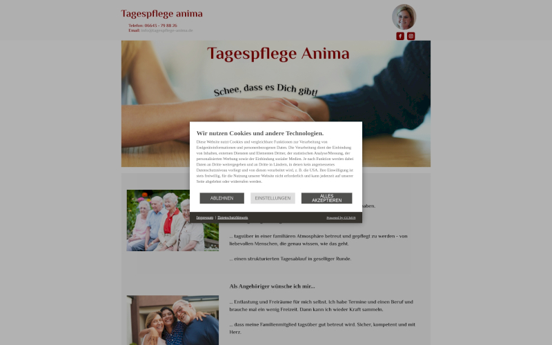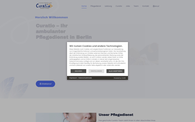 Das Herzstück von CCM19 für Ihre Pflegedienste Webseite, Onlineshop oder sonstige Applikation - der Cookie Banner für Pflegedienste. Mit diesem Banner realisieren Sie auf Ihrer Webseite die notwendige Zustimmung zum Setzen von diversen Cookies und zum ausführen von (Tracking)Skripten.