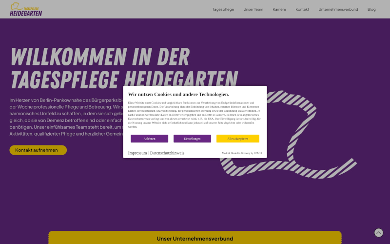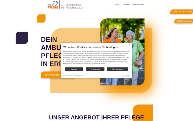 Durch die Einbindung von CCM19 in Ihre Webseite können Sie sicher sein, dass Sie nicht nur einen Cookie Consent Manager wählen, der technische Exzellenz bietet, sondern auch eine Lösung, die speziell auf die Bedürfnisse der Branche der Pflegedienste zugeschnitten ist. Die Kombination aus hoher Zustimmungsrate, Rechtssicherheit und Anpassungsfähigkeit macht CCM19 zur idealen Wahl für alle, die Wert auf Datenschutz und Nutzererfahrung legen.