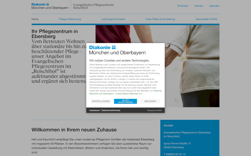 - Die Flexibilität von CCM19 gewährleistet, dass Anpassungen an die Consent-Management-Plattform jederzeit möglich sind, um auf Änderungen im rechtlichen Umfeld reagieren zu können, eine unverzichtbare Eigenschaft für den sicheren Betrieb von Pflegeheim-Webseiten.