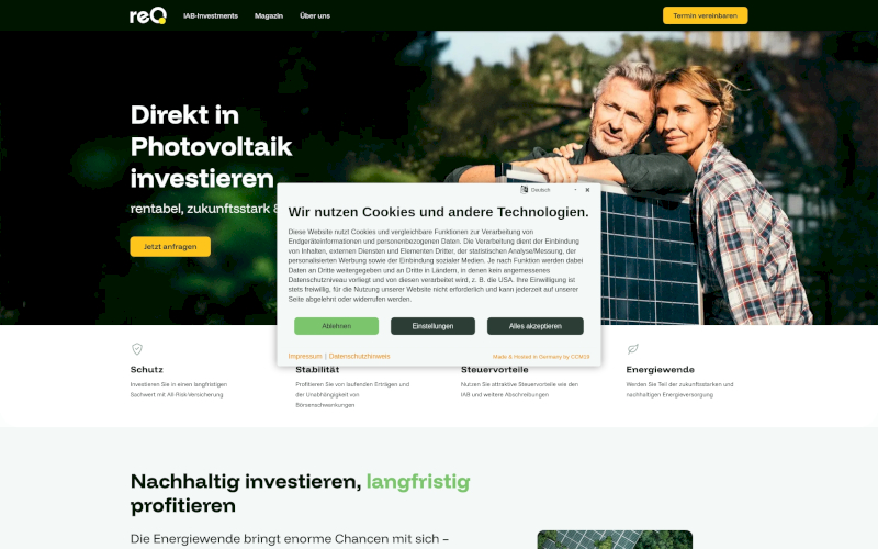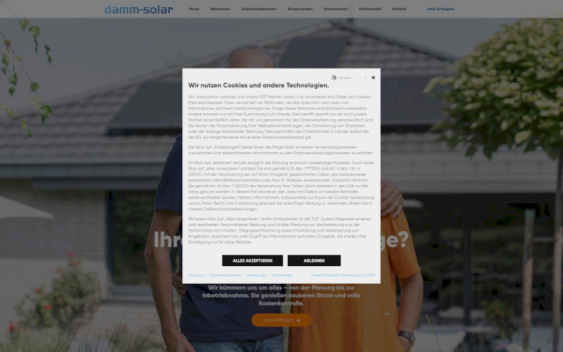 CCM19 bietet eine maßgeschneiderte Lösung, die speziell darauf ausgerichtet ist, Webseiten von Photovoltaik-Installateuren DSGVO- und TDDDG-konform zu machen. Mit einer deutschen Datenspeicherung, dem Verzicht auf US-Anbieter und einer nicht auf TCF basierenden Struktur, stellt CCM19 eine sichere Wahl dar. Seine anpassungsfähige Banner-Technologie, übersichtliche Bedienoberfläche und Optimierungsmöglichkeiten für Marketingzwecke machen CCM19 zum idealen Partner.