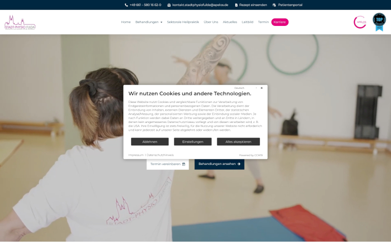 Funktionen und Vorteile von CCM19 für Physiotherapie-Websites