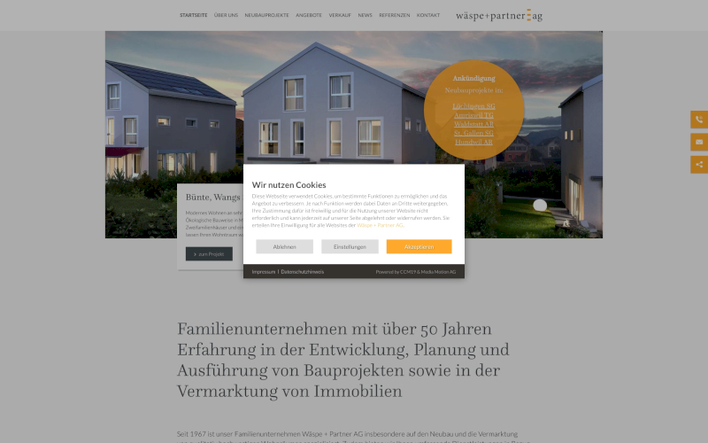 Cookie Banner für Projektentwicklung