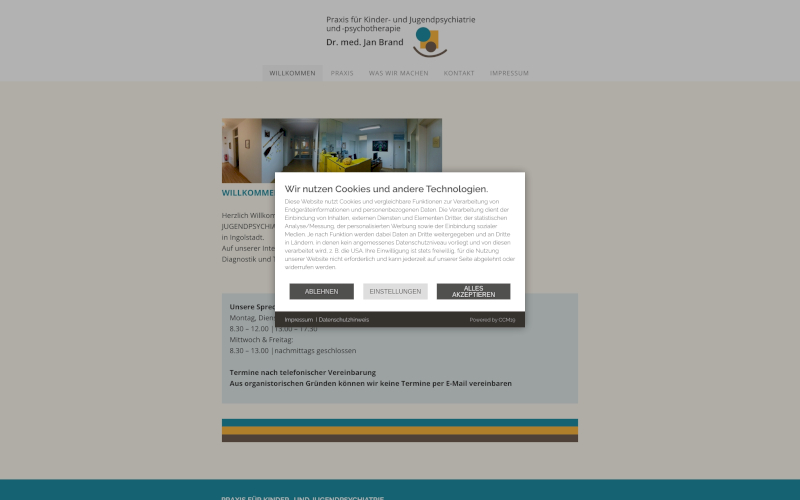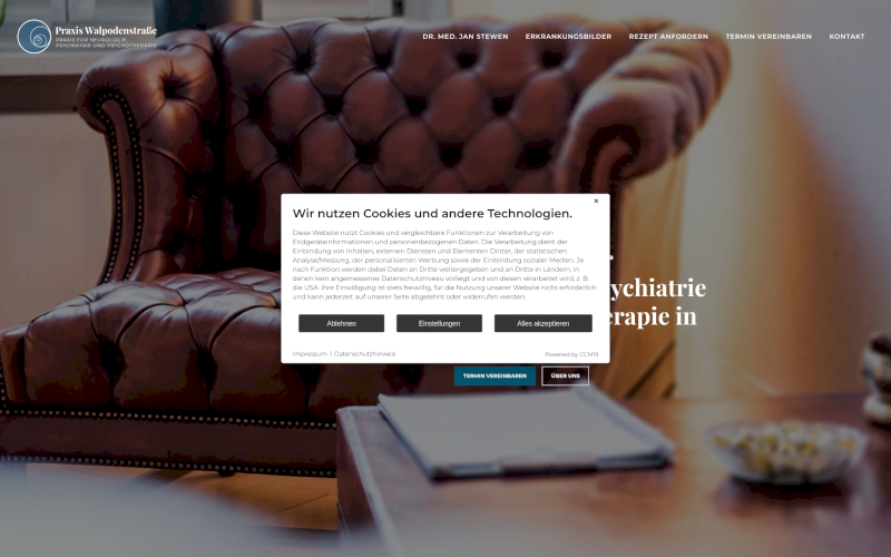 Entdecken Sie mit CCM19, den speziell für Psychotherapeuten entwickelten Cookie Consent Manager. Mehr Zustimmung, besserer Datenschutz! Optimieren Sie Ihre Webseite mit CCM19 - sicher, effizient und zuverlässig. Deutschlands führende Wahl für Psychotherapeuten.
