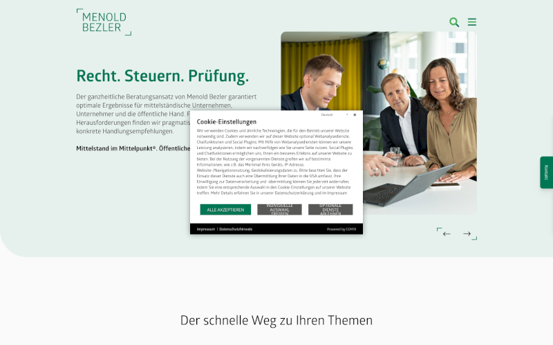 Mit CCM19 können Sie sicher sein, dass Ihr Cookie Consent Management sowohl DSGVO- als auch TDDDG-konform ist, unabhängig davon, ob Sie eine kleinere Kanzleiseite oder eine große internationale Anwaltskanzlei betreiben. Die klare Kommunikation, anpassbare Banner, intuitive Bedienoberfläche und Marketing-Optimierungsmöglichkeiten setzen neue Maßstäbe in der Branche.