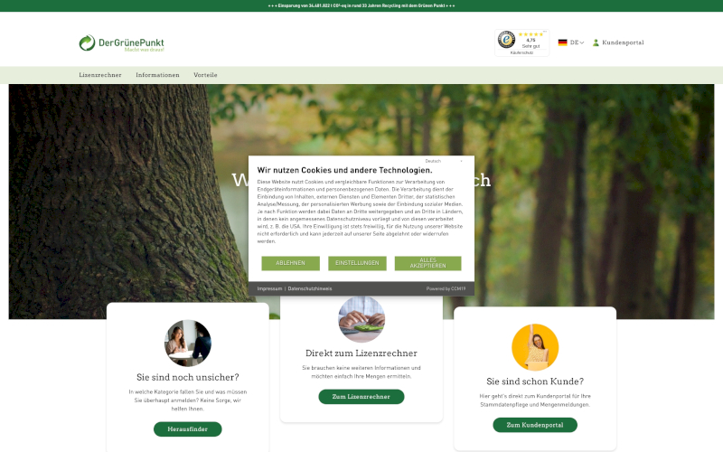 Das Herzstück von CCM19 für Ihre Recyclingunternehmen Webseite, Onlineshop oder sonstige Applikation - der Cookie Banner für Recyclingunternehmen. Mit diesem Banner realisieren Sie auf Ihrer Webseite die notwendige Zustimmung zum Setzen von diversen Cookies und zum ausführen von (Tracking)Skripten.