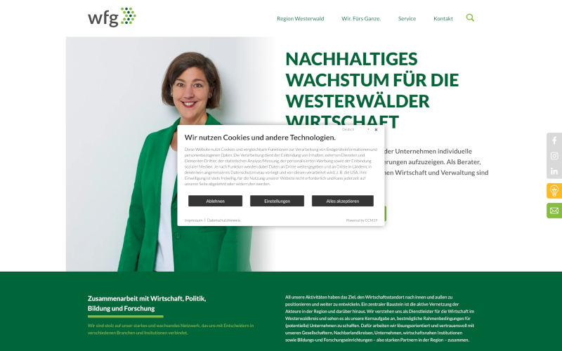 Das Herzstück von CCM19 für Ihre Regionalentwicklung Webseite, Onlineshop oder sonstige Applikation - der Cookie Banner für Regionalentwicklung. Mit diesem Banner realisieren Sie auf Ihrer Webseite die notwendige Zustimmung zum Setzen von diversen Cookies und zum ausführen von (Tracking)Skripten.