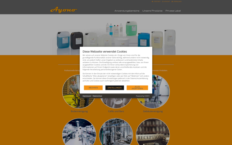 Das Herzstück von CCM19 für Ihre Reinigungsdienste Webseite, Onlineshop oder sonstige Applikation - der Cookie Banner für Reinigungsdienste. Mit diesem Banner realisieren Sie auf Ihrer Webseite die notwendige Zustimmung zum Setzen von diversen Cookies und zum ausführen von (Tracking)Skripten.